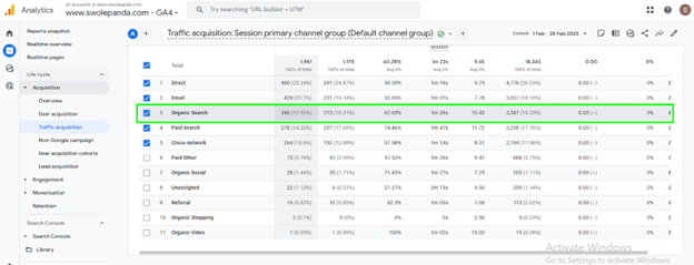 | Organic Sessions | 340 (17.52% of total) | Only 3rd highest channel behind Direct & Email |